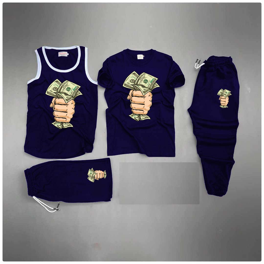 Blue Dollar Capture Printed Bundle Of 4 Dry-Fit Complete Summer Deal.