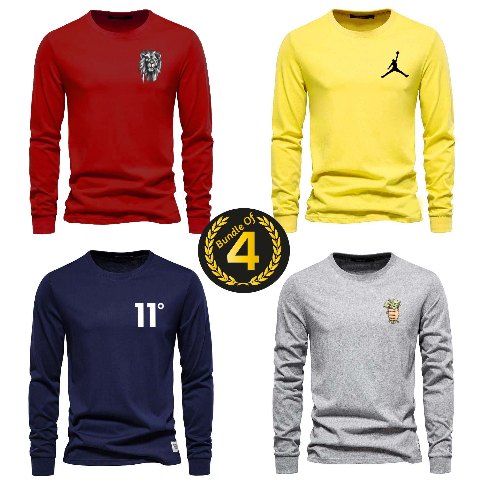Bundle Of 4 Sweat-Style O-Neck Full Sleeve Tshirt For Summer's.