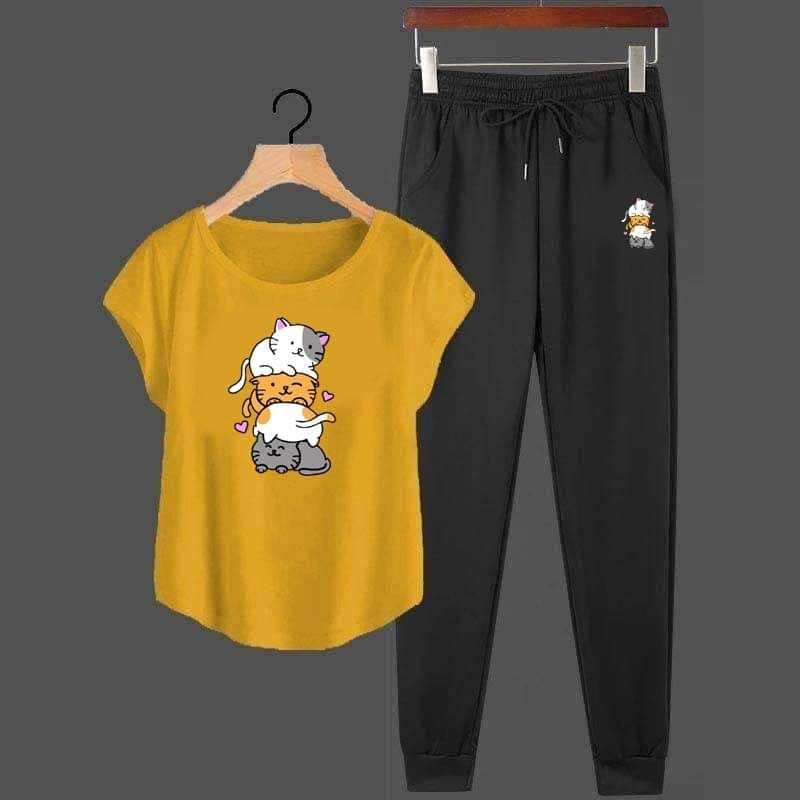3-Kitty Cap-Sleeves Printed 2-Pcs Summer Suit For Her
