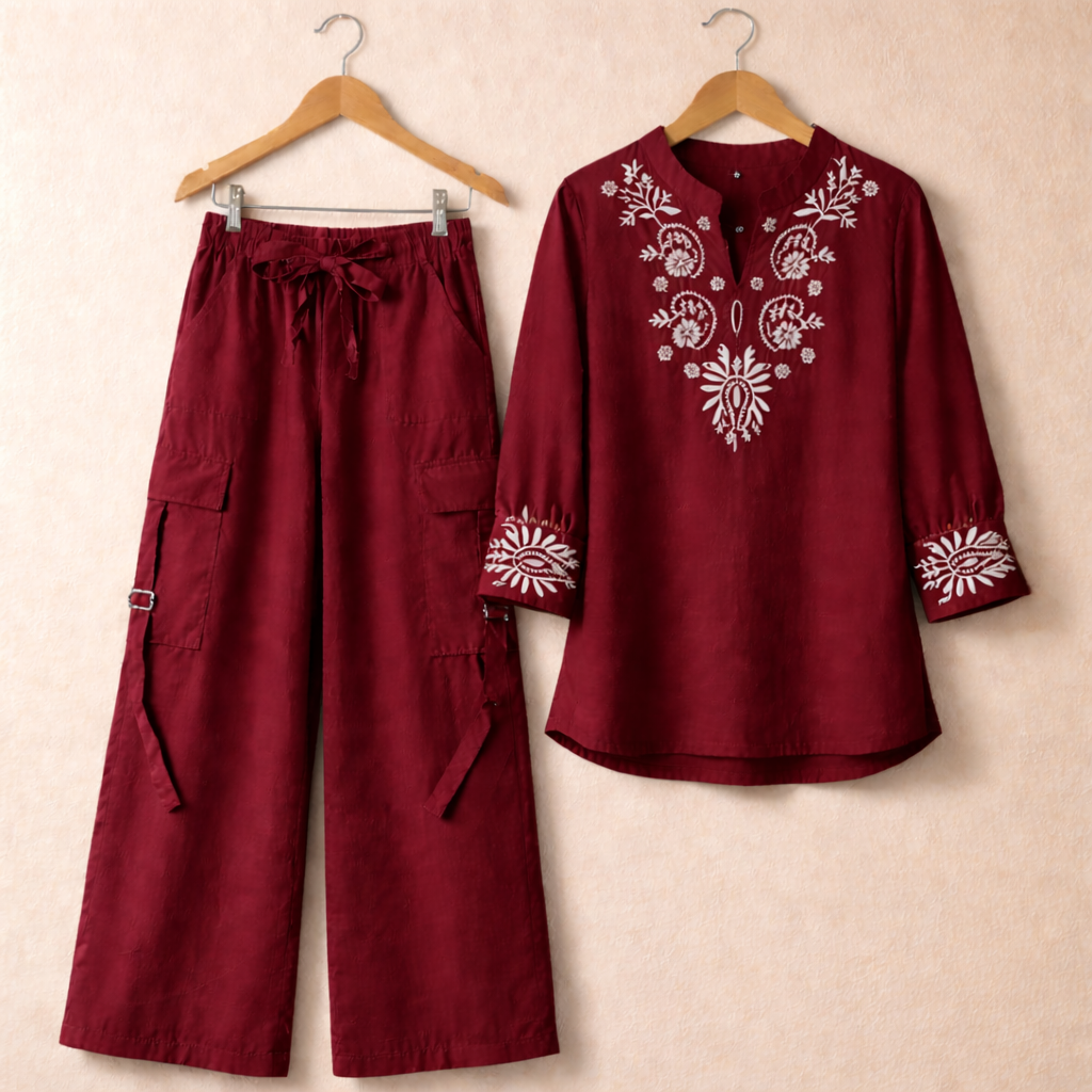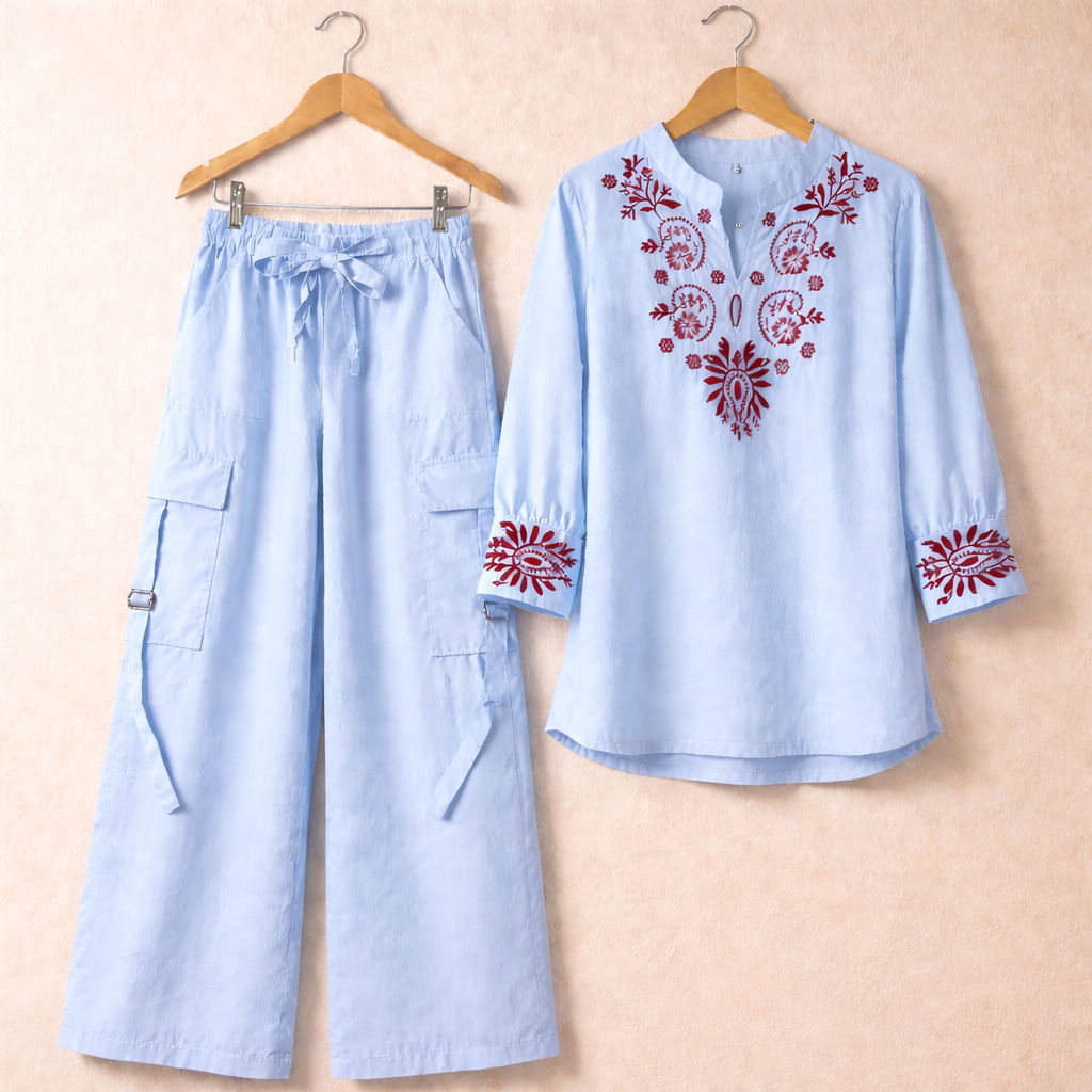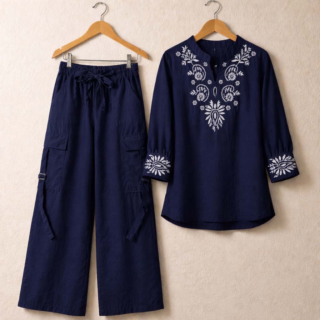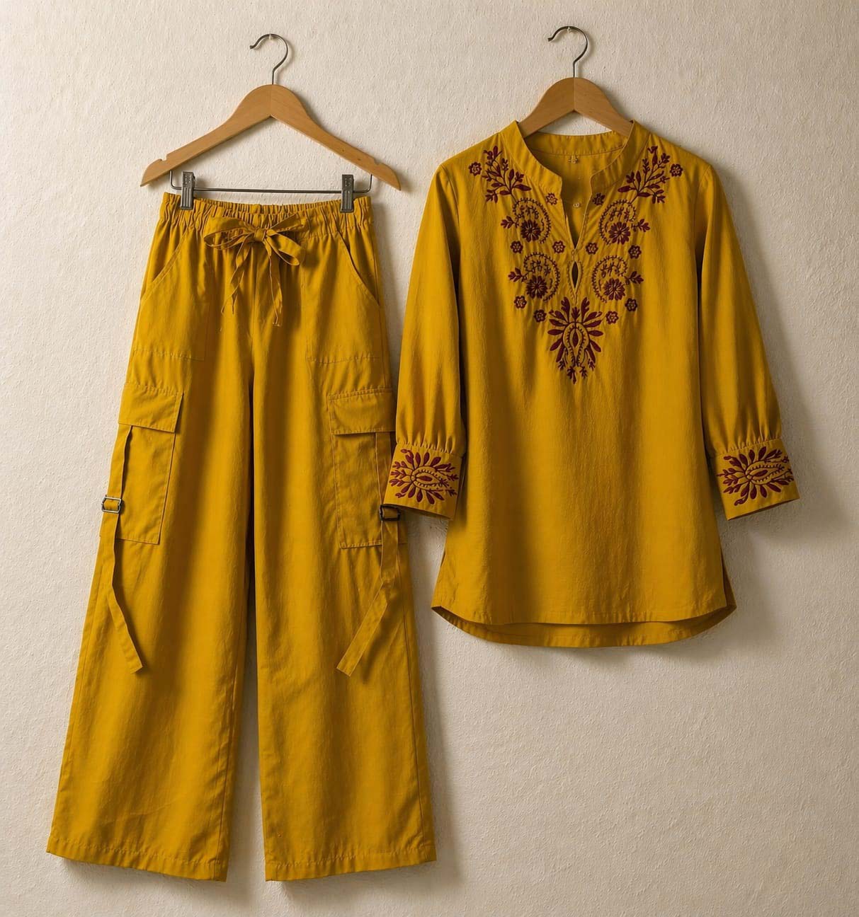 Fabric: Soft & Comfortable Imported Bottom With Thread Embroidered Detailing And Cargo Trouser Style Best For Summer Casual Wear.