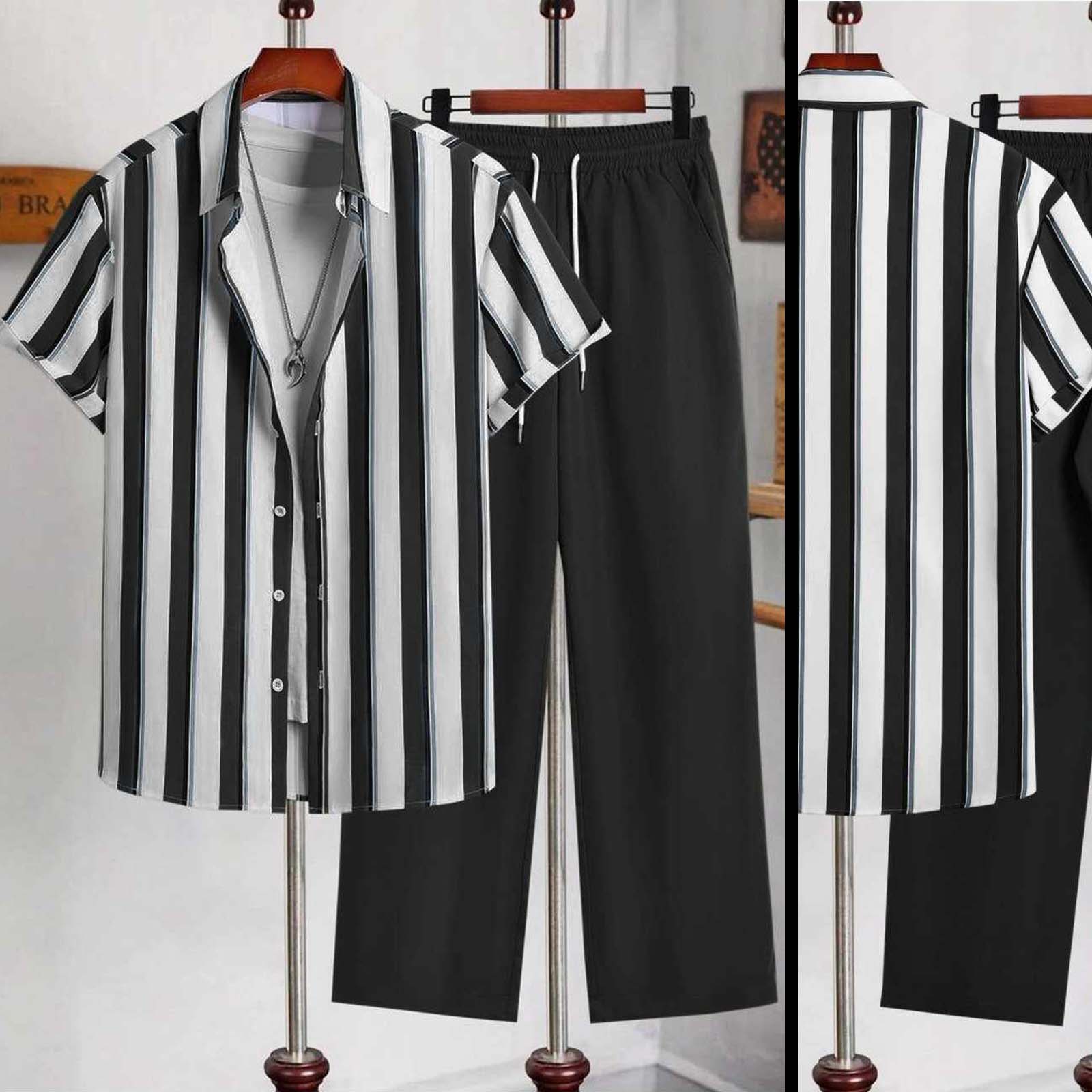 Stripe Printed Shirt Style Dry-Fit 2-Pcs Summer Suit. MS3D-51