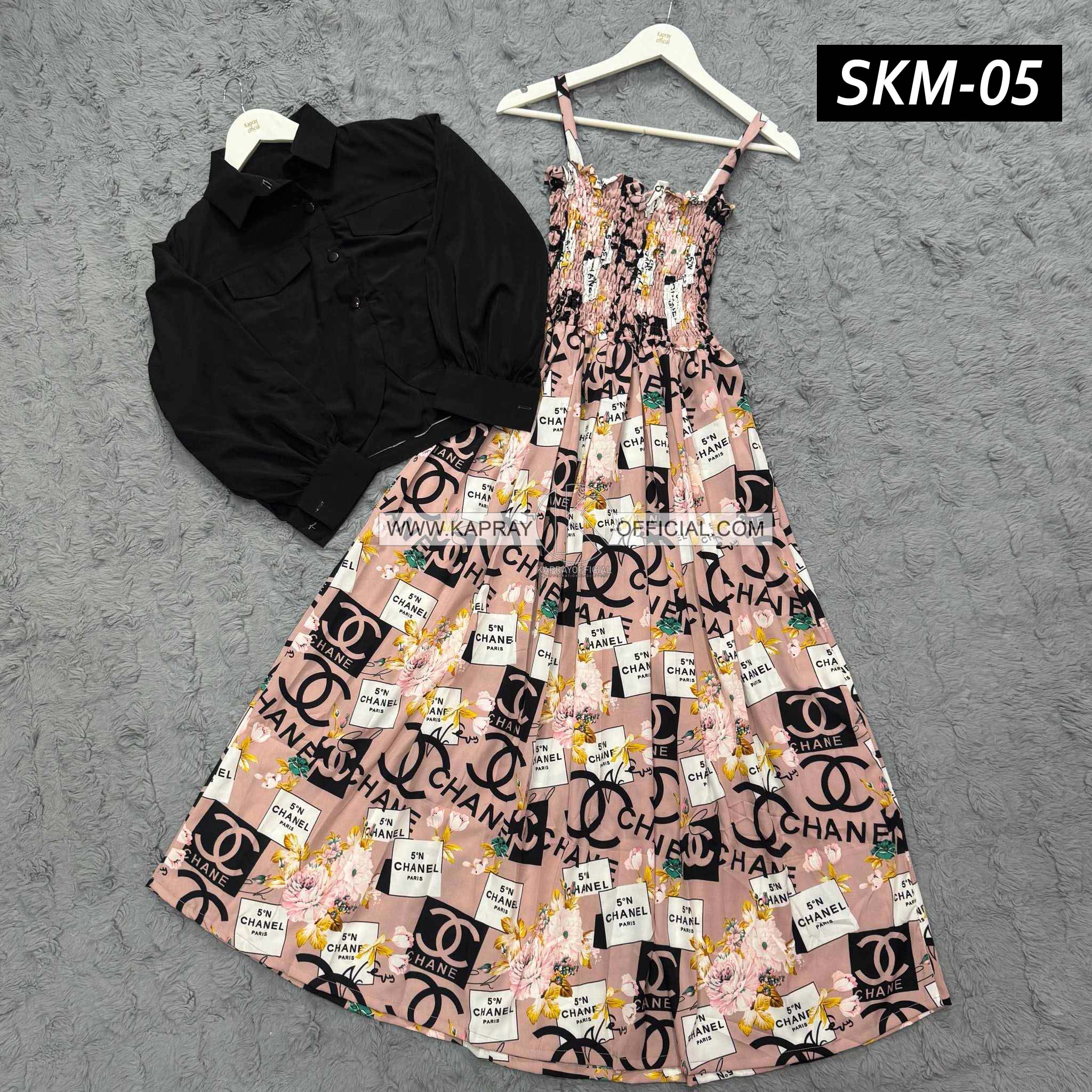 Short Koti & Printed Smoky Maxi Style Western 2-Pcs Stiched Suit. SKM-05