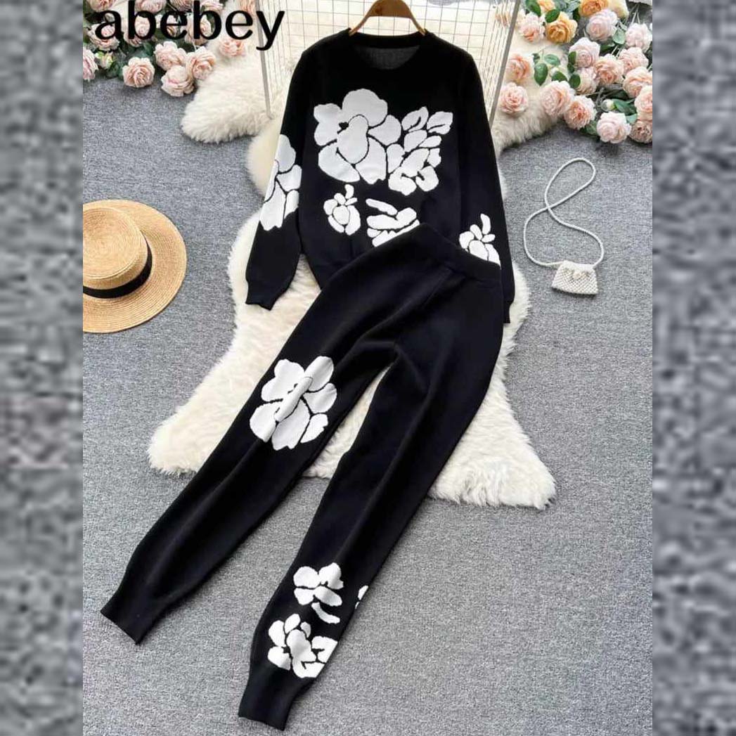 White Rose Printed Premium Quality Winter 2-Pcs Tracksuit For Her. WWTS-03